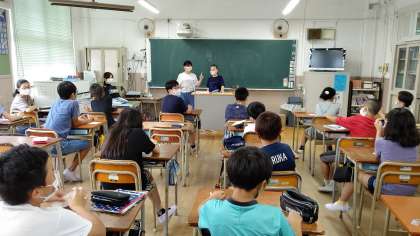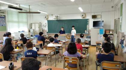 1時間目、6年生が国語の学習の前に、動物係りの児童が前に出て、クイズを出しています。