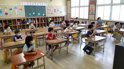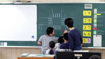 学校の北側にある交差点を例に出して、渡りかたを考えています。