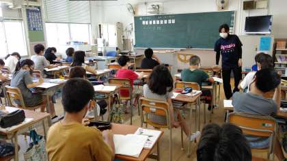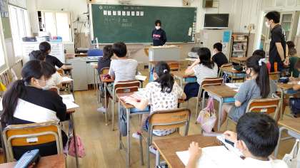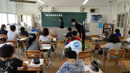 2時間目、6年生が算数の学習をしています。「1から9の数字を使って、八分の五になる式」を考えています。