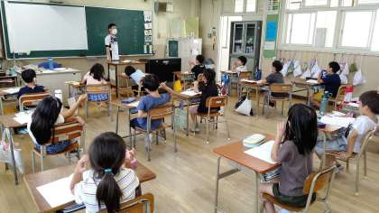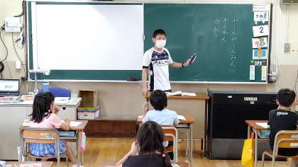 5時間目、2年生が国語の学習をしています。「カタカナ」を学習しています。どんな時にカタカナを使うのか、考えています。
