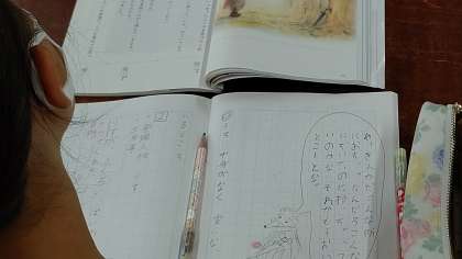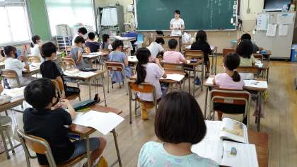 1時間目、3年生が国語の学習をしています。「はりねずみと金貨」について学習しています。