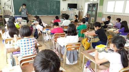3時間目、4年生が国語の学習をしています。村中李衣さんの「走れ」を学習しています。わからないことばは、国語辞典で調べています。