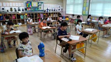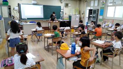1時間目、2年生が国語の学習をしています。あまん きみこさんの「名前を 見て ちょうだい」を学習しています。
