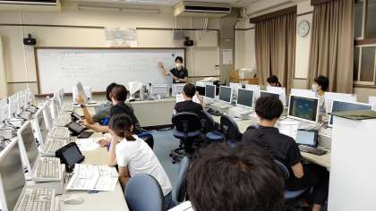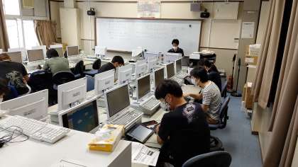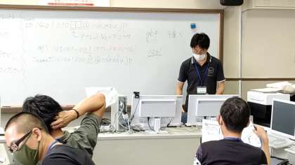 放課後、先生方がパソコン教室でICT研修をしています。