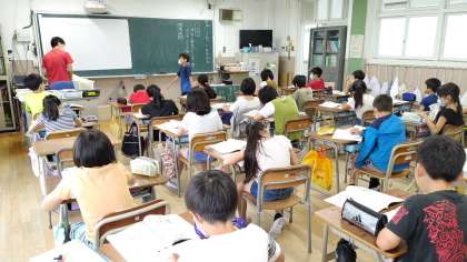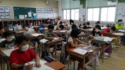 1時間目、4年生が国語の学習をしています。「ことわざや故事成語」について学習しています。