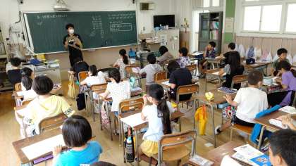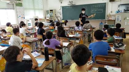 2時間目、4年生が算数の学習をしています。 「分度器を使って角度」を書いています。