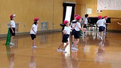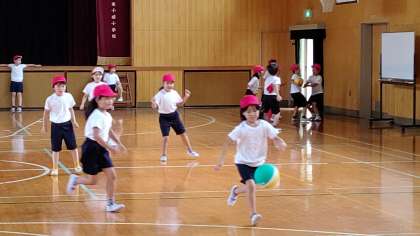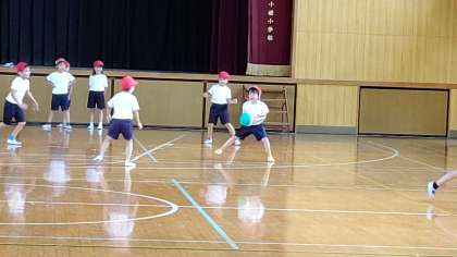 3時間目、2年生が講堂で体育の学習をしています。「ボールを使ったゲーム」をしています。