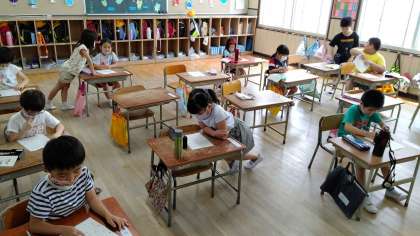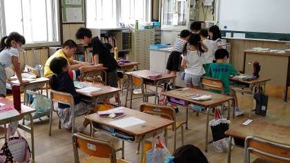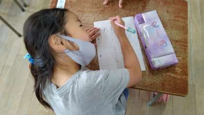 3時間目、1年生が国語の学習をしています。「らりるれ」を練習しています。