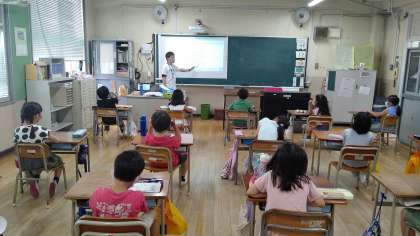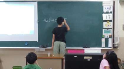1時間目、2年生が算数の学習をしています。「おおきな数」の表し方を学習しています。