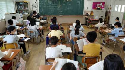 1時間目、5年生が国語の学習をしています。「新聞記事を読み比べよう」を学習しています。