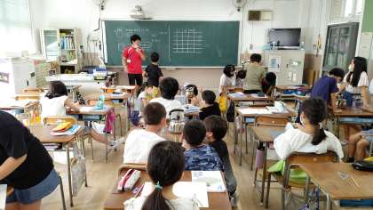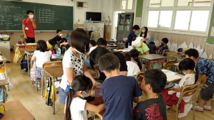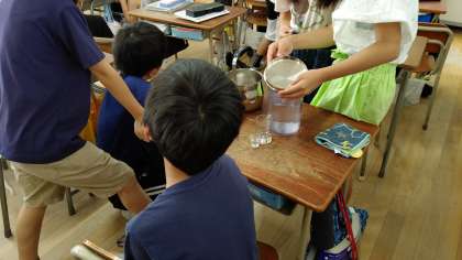3時間目、4年生が算数の学習をしています。「L、dL、mL」を学習しています。