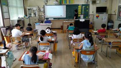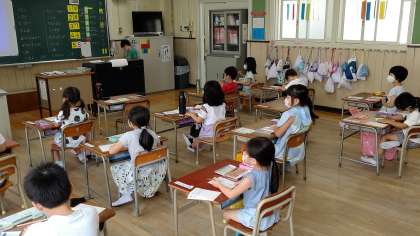 3時間目、1年生が図工の学習をしています。「お誕生日会で渡すカード」を作っています。