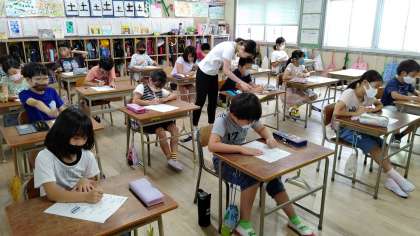 1時間目、3年生が国語の学習をしています。「ローマ字」の問題に取り組んでいます。