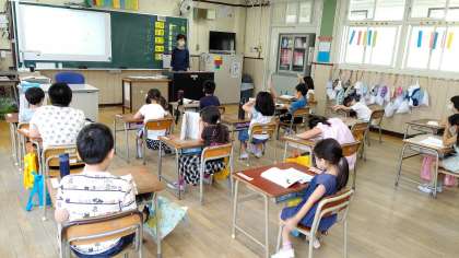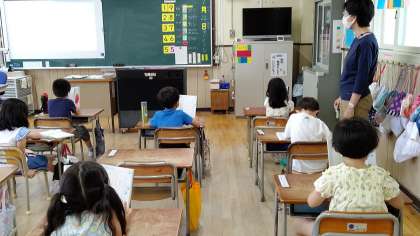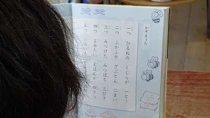 1時間目、1年生が国語の学習をしています。「かぞえうた」を学習しています。