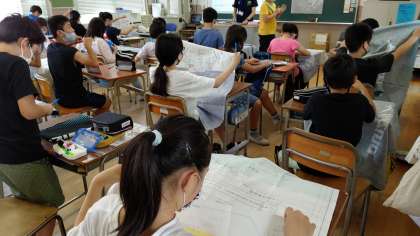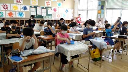 1時間目、6年生が家庭科の学習をしています。「エプロン」を作る準備をしています。