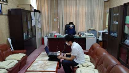 今日は、オンラインで全校朝会を実施しました。校長室から校長先生、山本敦子先生からお話がありました。オンライン授業に備えての試行です。新型コロナ感染症防止のため、マスクの着用や手洗いに努めましょう。