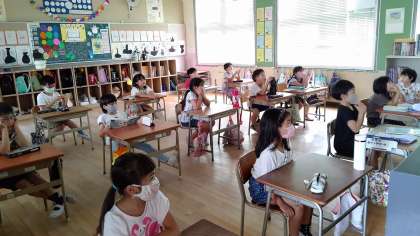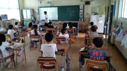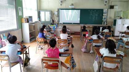 5時間目、2年生が生活科の学習をしています。トンボの生態を学習しています。