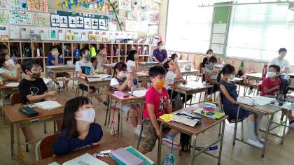 3時間目、3年生が算数の学習をしています。「距離」の計算問題をしています。