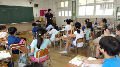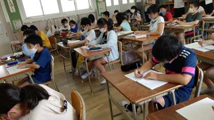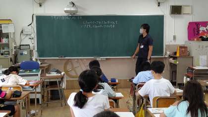 2時間目、5年生が算数の学習をしています。「余りがでる小数のわり算」について学習しています。