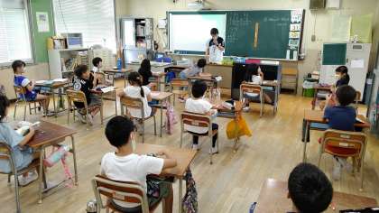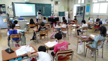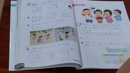 1時間目、2年生が算数の学習をしています。「二けたの足し算」を学習しています。