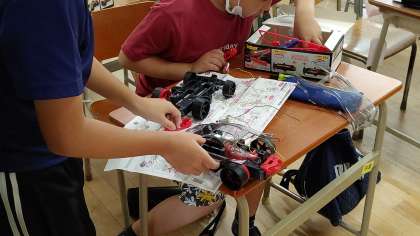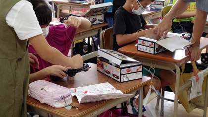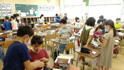 2時間目、4年生が理科の学習をしています。「モーターカー」を作っています。