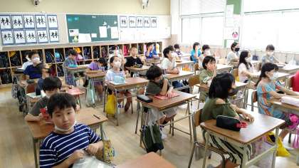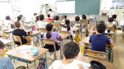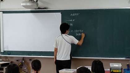 2時間目、4年生が学級活動をしています。「水遊び」について話し合いをしています。