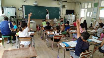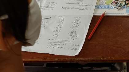 3時間目、3年生が算数の学習をしています。「時間の計算と足し算、引き算の筆算」を復習しています。