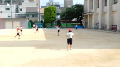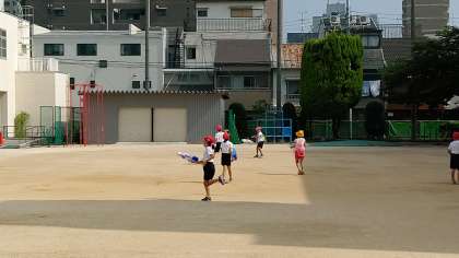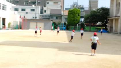 1時間目、昨日に続いて、3年生が運動場で水鉄砲大会をしています。