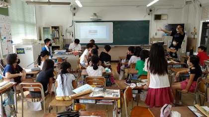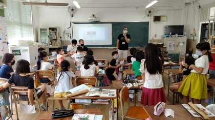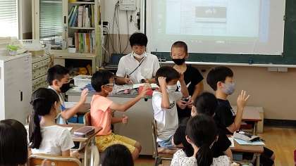 3時間目、4年生が音楽の学習をしています。「ドレミ」の歌に合わせて身体で表現しています。