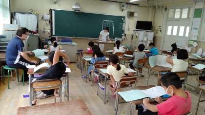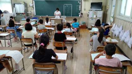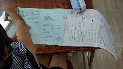 2時間目、3年生が学級活動をしています。「夏休みのしおり」をみんなで確認しています。
