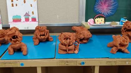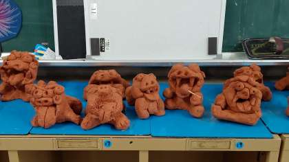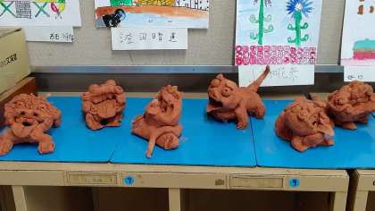 放課後、完成した「シーサー」が展示されていました。