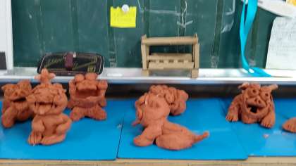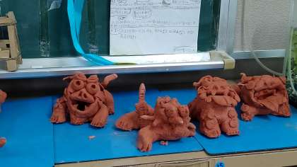 放課後、完成した「シーサー」が展示されていました。