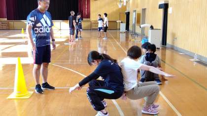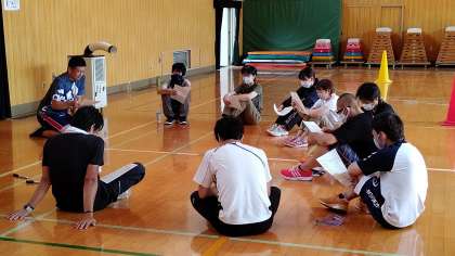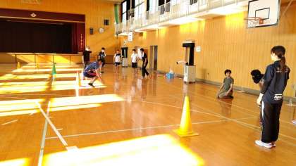 放課後、講堂で、教頭先生が先生方に体育の研修をされていました。