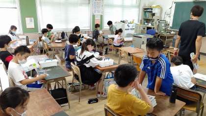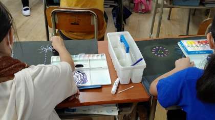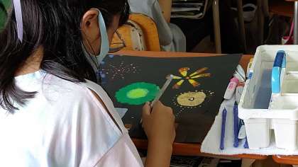 5時間目、5年生が図工の学習をしています。「花火」を描いています。