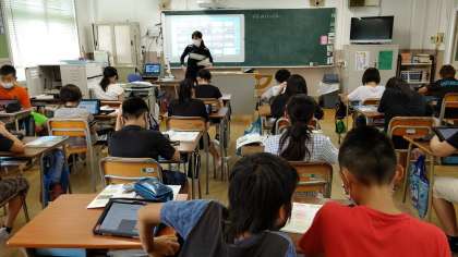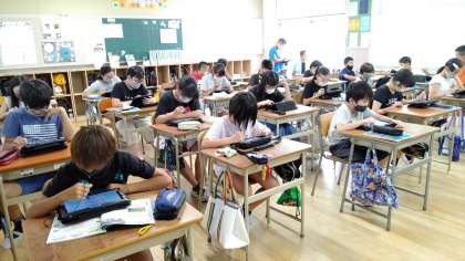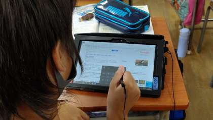 3時間目、6年生が社会科の学習をしています。「平安時代の文化」について、タブレットを使って調べています。