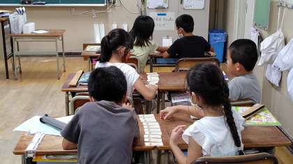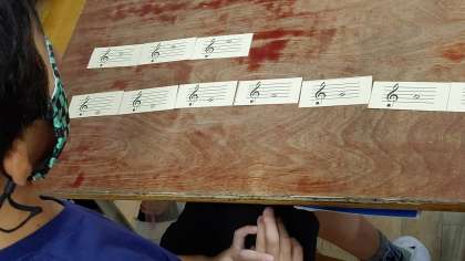 5時間目、3年生が音楽の学習をしています。音を聞いて「音階」当てゲームをしています。