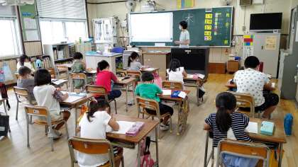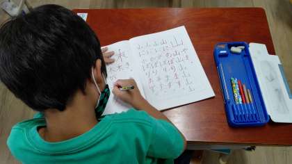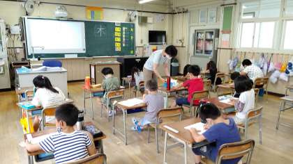 1時間目、1年生が国語の学習をしています。漢字「木」を学習しています。