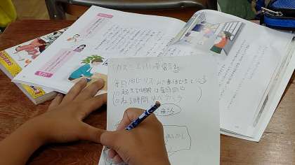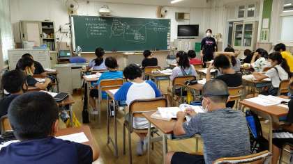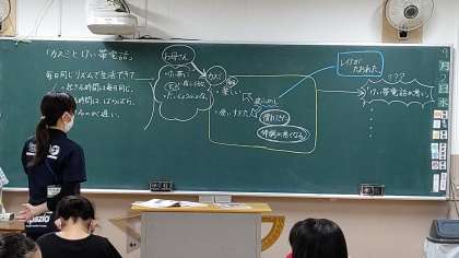 5時間目、6年生が道徳の学習をしています。「携帯電話」の使い方について、話し合いをしています。