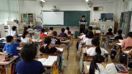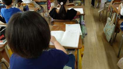 3時間目、4年生が国語の学習しています。「漢字テスト」をしています。