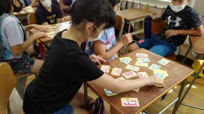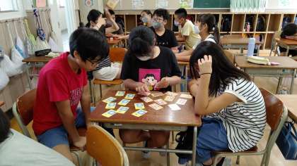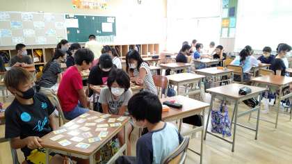 5時間目、6年生が総合の学習をしています。「カードゲーム」をしています。