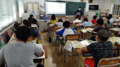 6時間目、6年生が社会科の学習をしています。「武士と貴族のちがい」について調べています。