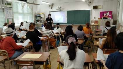 放課後、10月に大阪府立青少年海洋センターでの自然体験について保護者説明会がありました。木下先生から説明がありました。