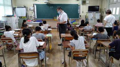 2時間目、3年生が算数の学習をしています。「そろばん」について、ゲストティーチャーの神路小学校の小島校長先生に今日と明日の2時間、教えていただきます。