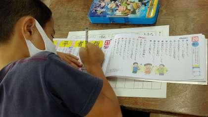 3年生が朝の学習で、漢字 「指」「者」を 学習しています。