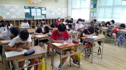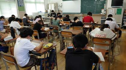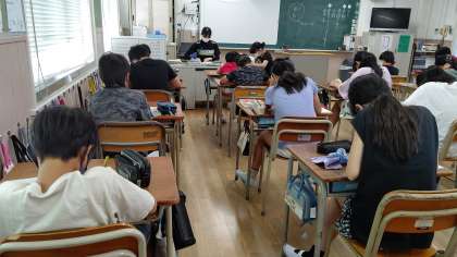 1時間目、6年生が国語の学習をしています。「学習した内容のテスト」をしています。