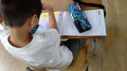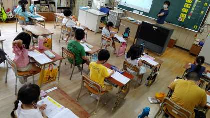 1時間目、1年生が国語の学習をしています。漢字「大」を学習しています。
