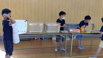 今年は、新型コロナ感染防止のため、東小橋夏祭りや地域のお祭りも中止になりました。今日は、ミニ夏祭りをして楽しんでいます。