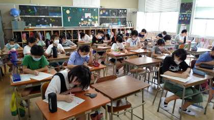 3時間目、5年生が、今まで学習した内容のテストをしています。