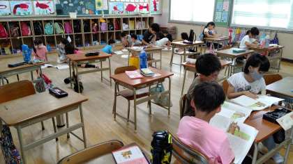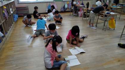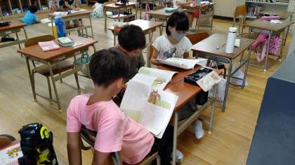 1時間目、2年生が国語の学習をしています。グループに分かれて本読みをしています。