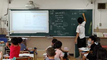 1時間目、4年生が社会科の学習をしています。「防災と減災」について考えています。「自助・共助・公助」について学習しています。